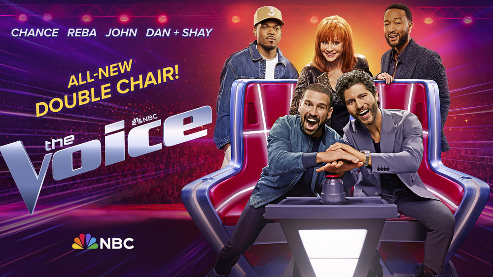 NBC’s “The Voice” sees its first coaching duo this season as country superstars Dan + Shay claim their all-new red double chair alongside returning coaches Reba McEntire, John Legend and Chance the Rapper as they vie to discover and coach the next singing phenomenon.