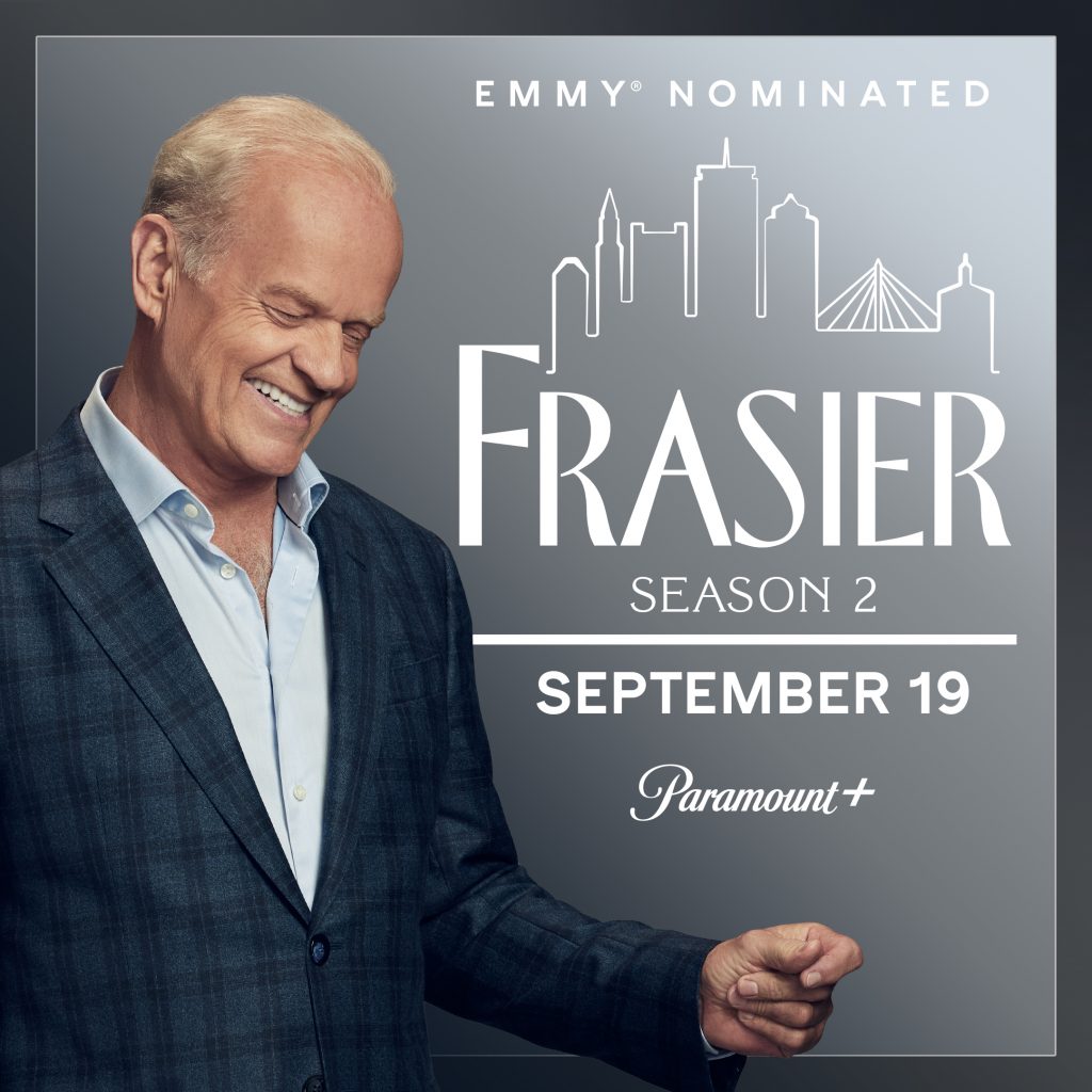 The highly anticipated second season of its original comedy series FRASIER, starring Kelsey Grammer. Season two will premiere on Thursday, September 19, with two episodes. New episodes will then drop weekly exclusively on Paramount+ in the U.S., Canada, the U.K., and Australia. The new season will launch later this year in additional territories where the service is available.