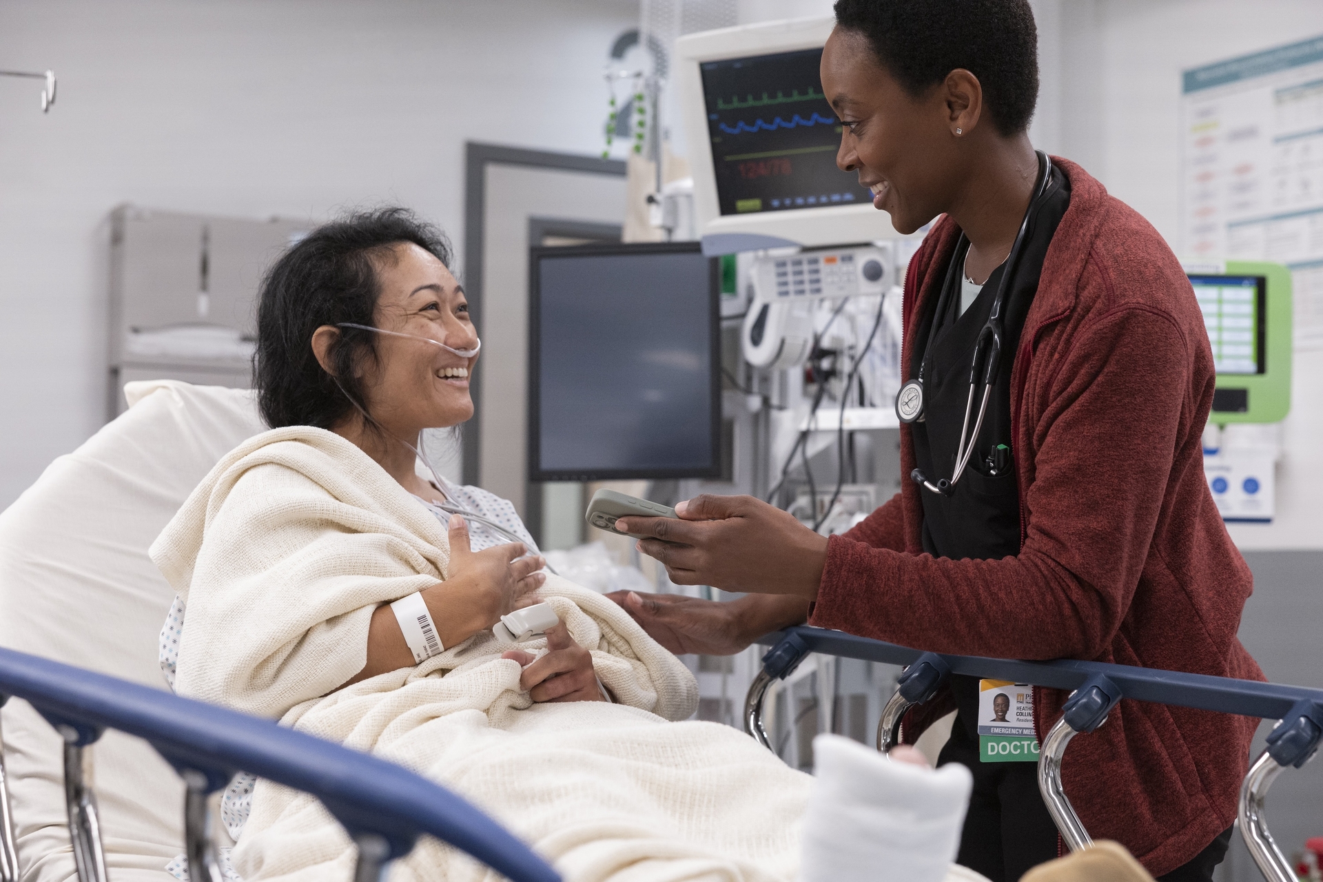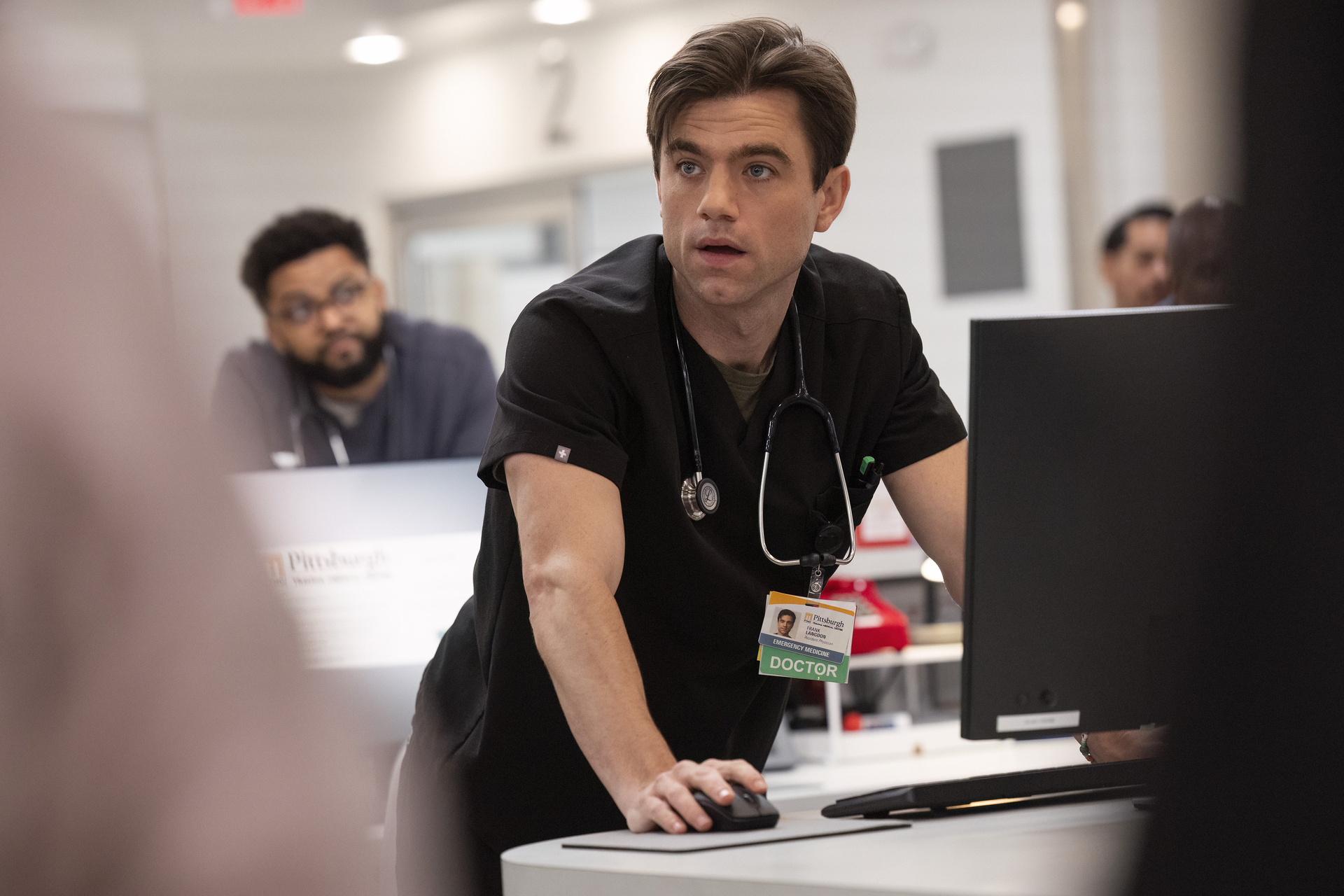 The Pitt stars Noah Wyle (Dr. Michael “Robby” Robinavitch), Tracey Ifeachor (Dr. Collins), Patrick Ball (Dr. Langdon), Supriya Ganesh (Dr. Mohan), Fiona Dourif (Dr. McKay), Taylor Dearden (Dr. King), Isa Briones (Dr. Santos), Gerran Howell (Whitaker), Shabana Azeez (Javadi), Katherine LaNasa (Dana Evans).