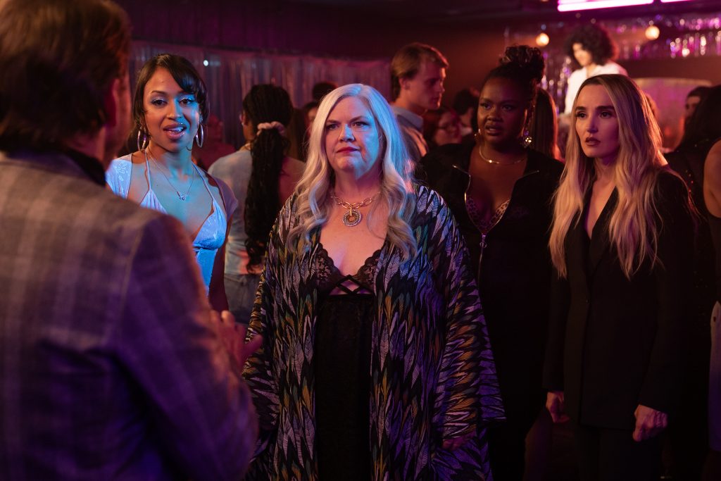 Santa Monica faces her challenges, besides feeling insecure about attending her high school reunion. She must save her beloved club, Diamond Dolls, from being shut down. The threat comes from sleazy businessman Rick Richards (Charlie Day). Reluctantly, she agrees. They build a found-family vibe with the support of club owner Betty Spaghetti (Paula Bell) and the other dancers. This gives the film heart beyond its comedic moments.